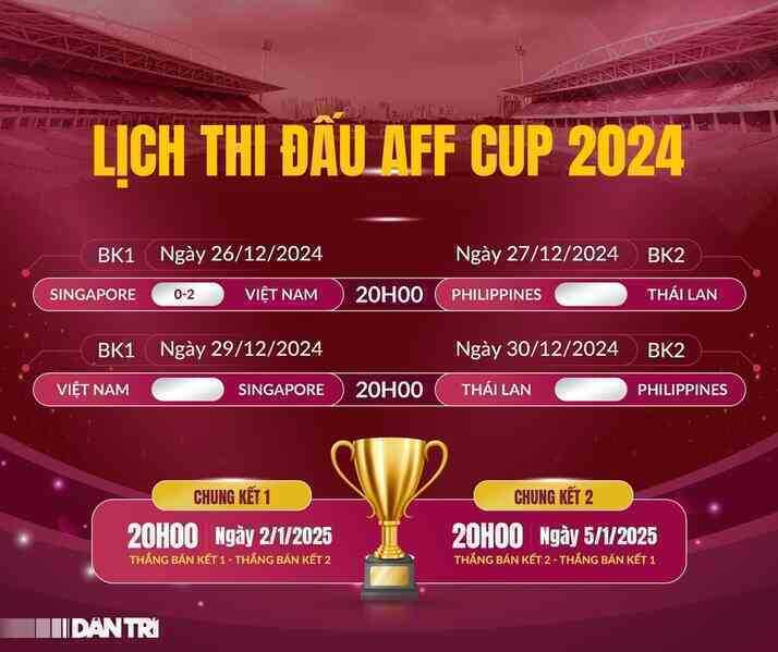 "Hai bàn thắng trong những phút bù giờ của hiệp 2. Đội tuyển Việt Nam của Kim Sang Sik đang trên đà lọt vào chung kết AFF Cup 2024", hãng thông tấn Yonhap của Hàn Quốc giật tít nói về chiến thắng 2-0 của tuyển Việt Nam trước Singapore trên sân Jalan Besar ở trận bán kết lượt đi AFF Cup 2024 diễn ra tối 26/12.