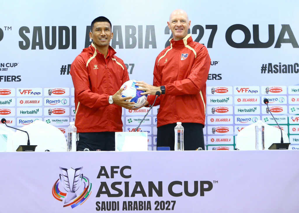 HLV Matthew Ross và đội trưởng Kiran Chemjong sẵn sàng gây bất ngờ cho tuyển Việt Nam. Ảnh: Hữu Hà