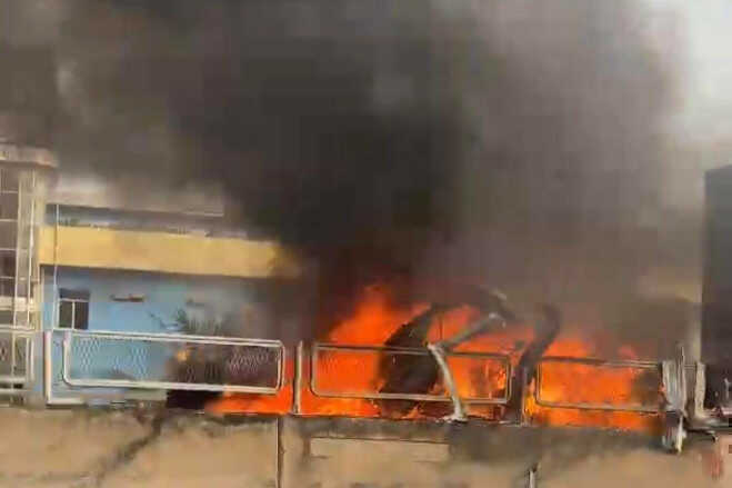 Trước nguy cơ cháy lan sang các phương tiện khác và toàn bộ khu vực, nhiều người hợp lực đẩy ô tô ra ngoài. Tuy nhiên, vừa được đưa ra đường, ngọn lửa tiếp tục bùng mạnh, bao trùm chiếc xe và tạo cột khói nghi ngút.